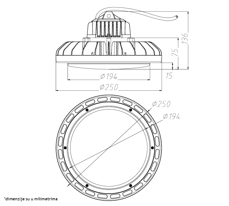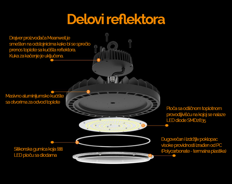 Ovaj reflektor ima mogućnost prilagođavanja naponu u opsegu AC100~277V 50~60Hz.