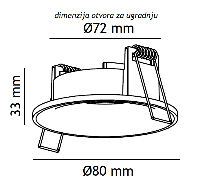 Kvalitetna fiksna rozetna, odlične završne obrade. Deo sa sijalicom je upušten što daje specifičan efekat tokom rada. Za ugradnju ovog tipa svetiljke potrebno je da plafon bude spušten minimalno 75 mm radi zaštite od eventualnog pregrevanja.