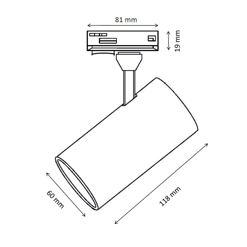 Šinski reflektor bele boje, sa jednim grlom tip GU 10.