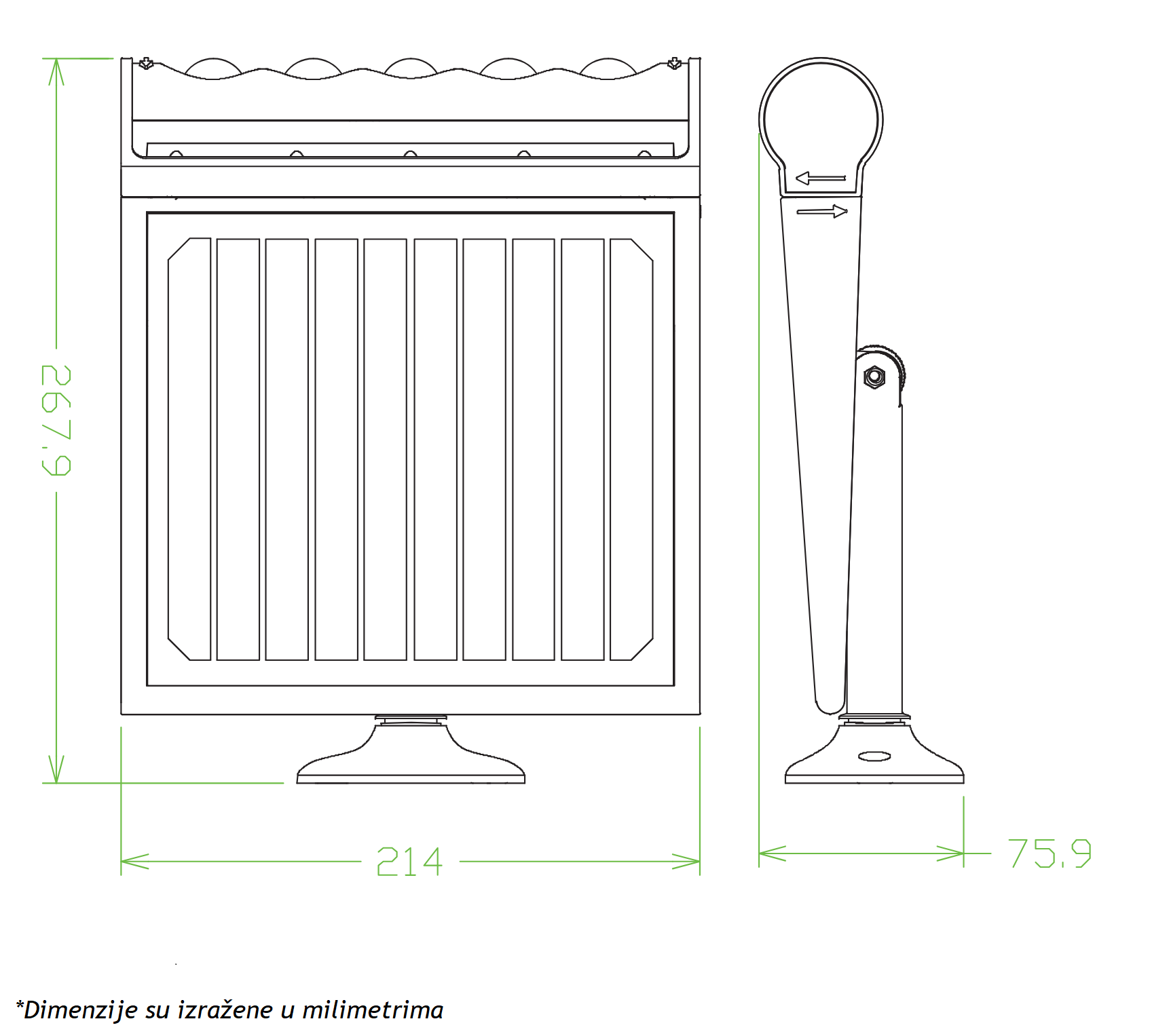 Solarna led svetiljka za spoljnu upotrebu, crne boje i snage 8W.